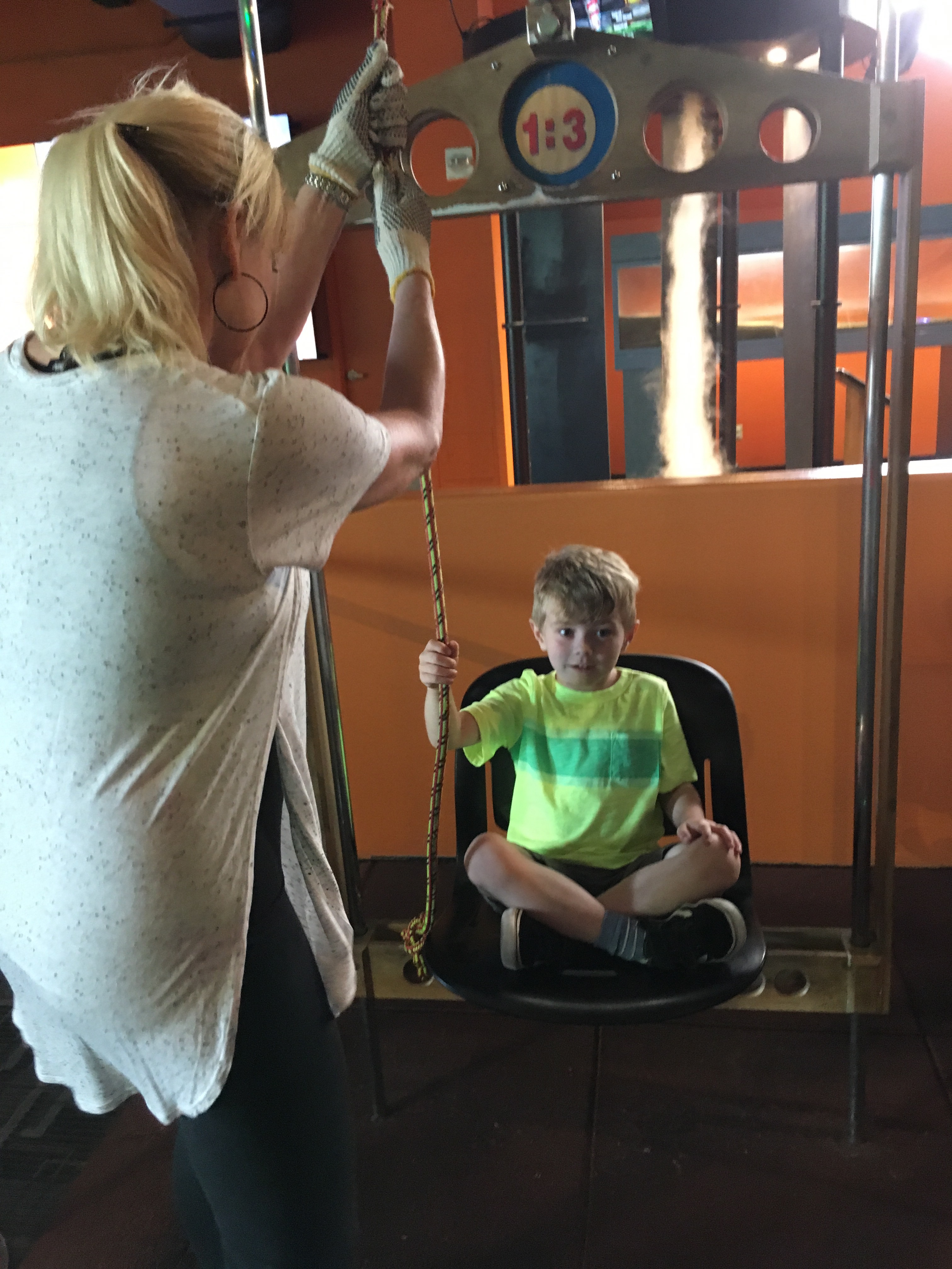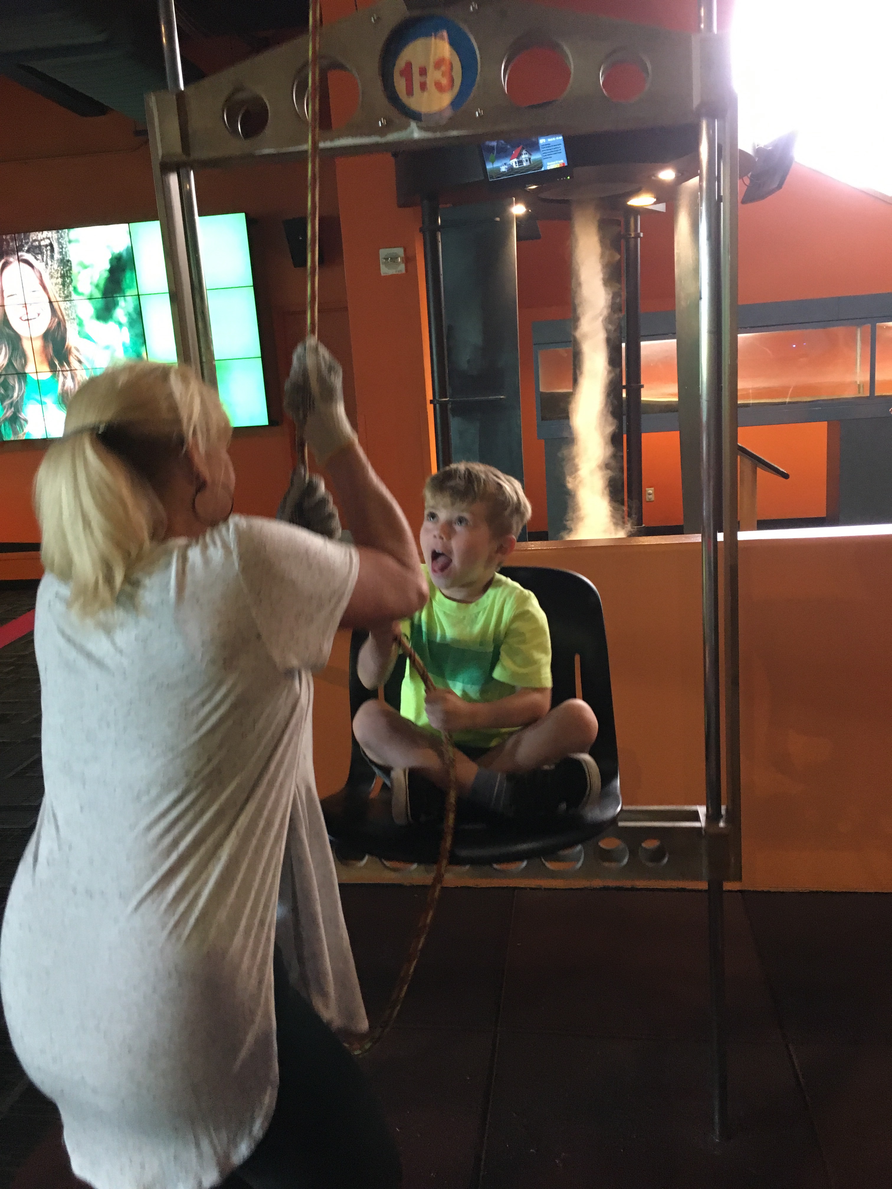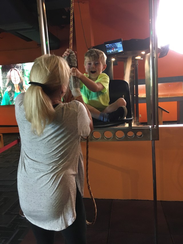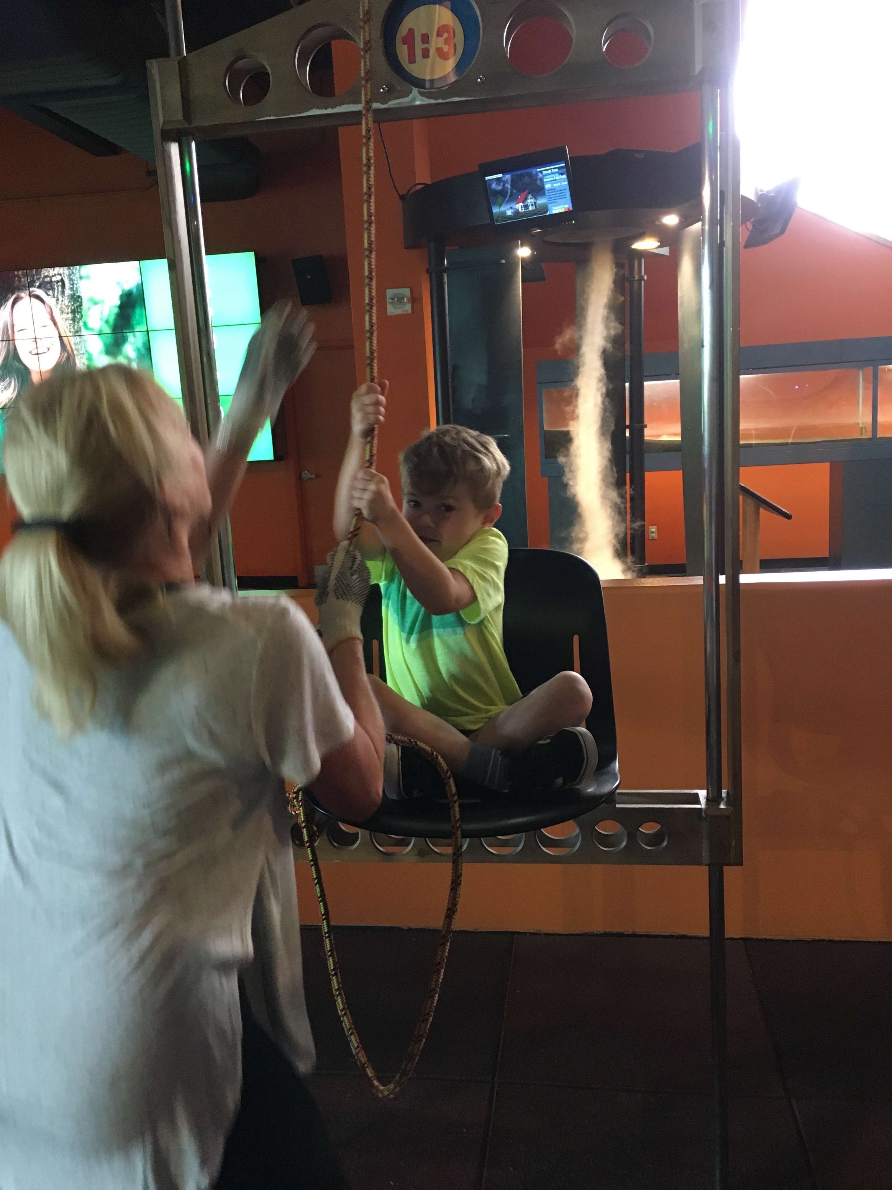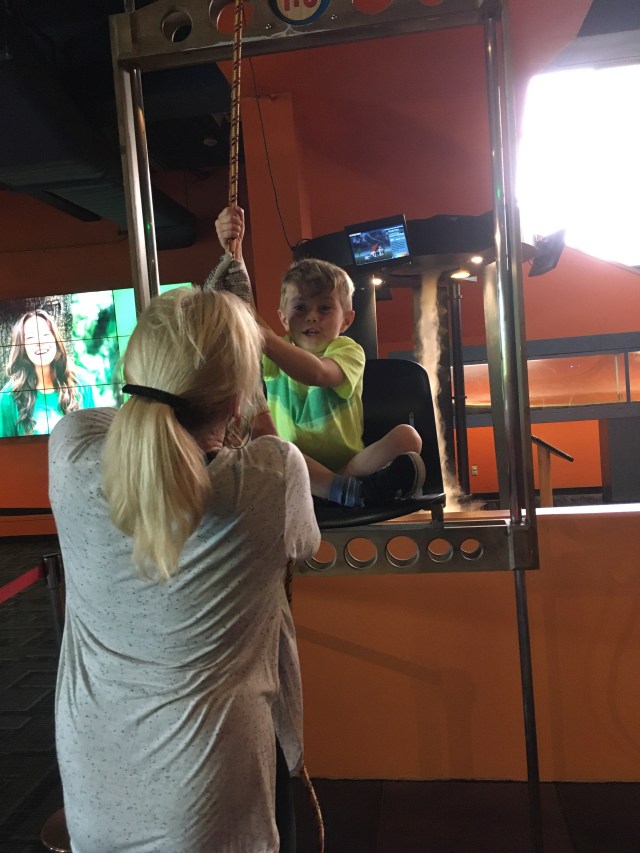 The featured exhibits were Doc McStuffins and an outer space exhibit by Boeing. Jackson loved the Doc exhibit. it was full of cribs and baby bathtubs and a vet clinic, and he enjoyed grooming and feeding baby dolls and a plastic piggy bank. Jacob was not impressed.