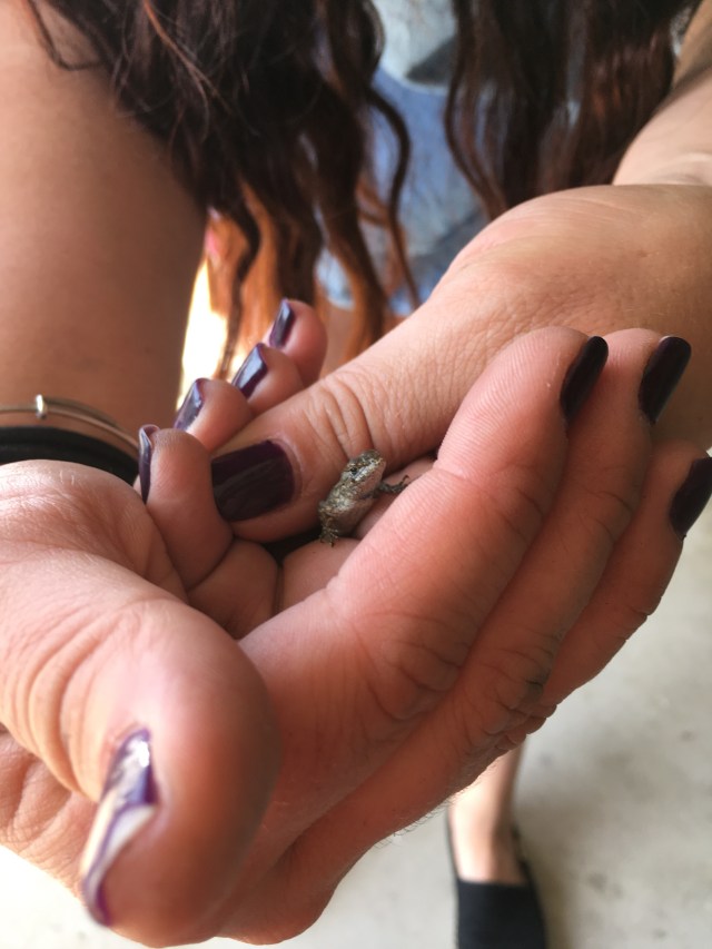 Grammie took Jackson on a special adventure, and I had some alone time with Jacob. We watered and I caught a baby lizard.