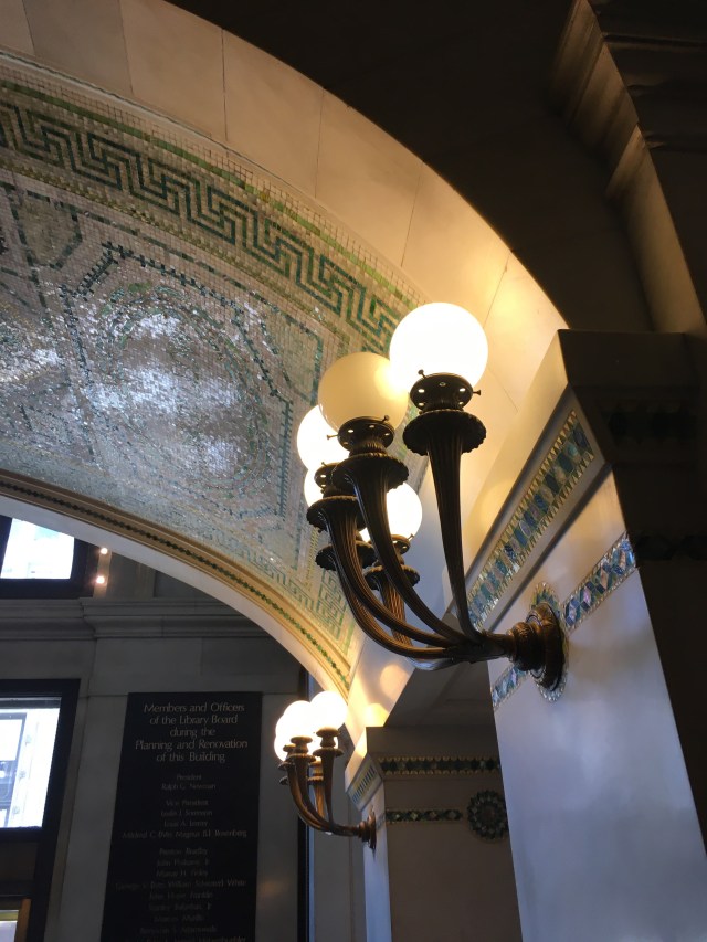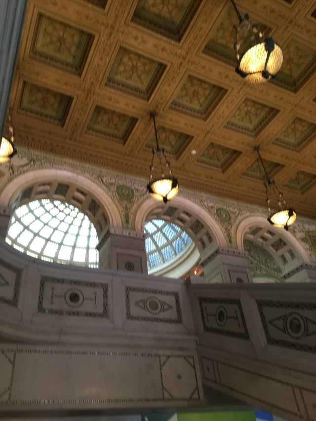 we walked to the brown line and took it downtown again. Bree walked us through the old Chicago public library (now the Cultural Arts building?) thinking I would like it, and boy did I. The mosaics, literary quotes, and architecture were one thing…but the classical pianist playing away under the Tiffany glass dome was almost too much for my little heart to handle!