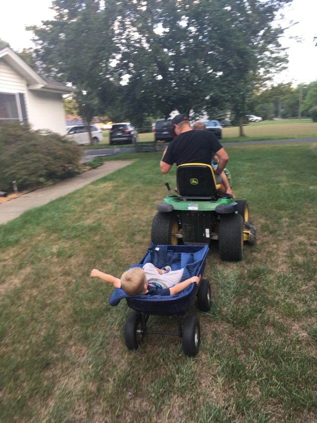 At cousin Michele’s house, the boys got to ride on her mower! That’s some serious fun!
