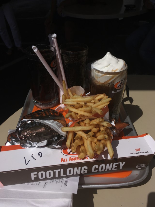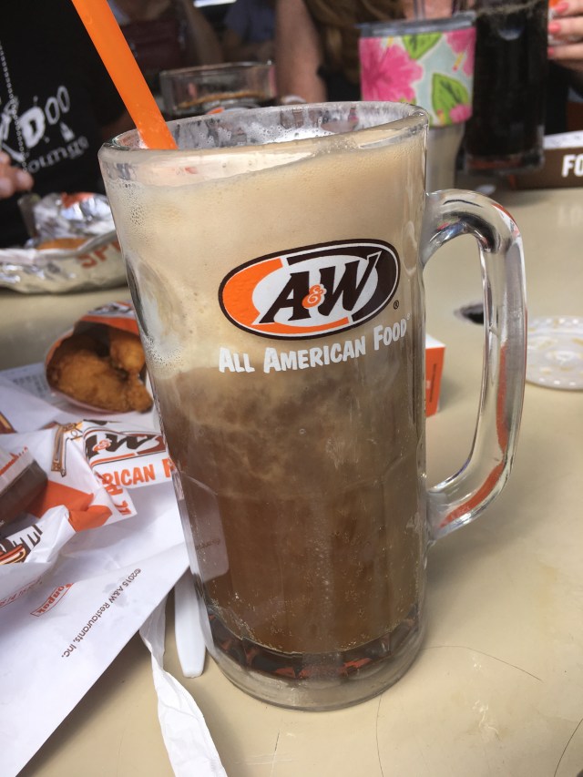 Then we were off downriver to expose Jacob to a root beer float. The A&W drive in was a faithful stop for us on our summer trips when we stayed with my grandma. They bring your food and hang it in your car window on a tray, and the root beer is on tap and served in a frosty mug.
