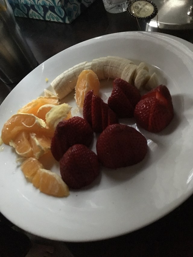 He scratched my arm and kissed me and insisted I stay in bed and rest. Daddy helped him prepare my cut up fruit and he fed me some, eating most of the banana slices while we talked.