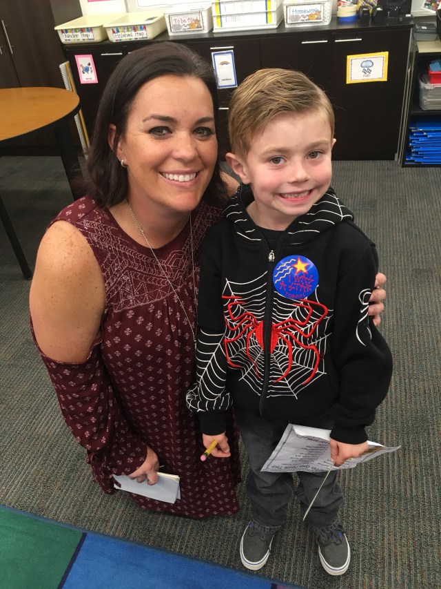 Down. Each color corresponds to points earned at the end of the day. Below is Ms. Tippets, Jacob’s teacher.