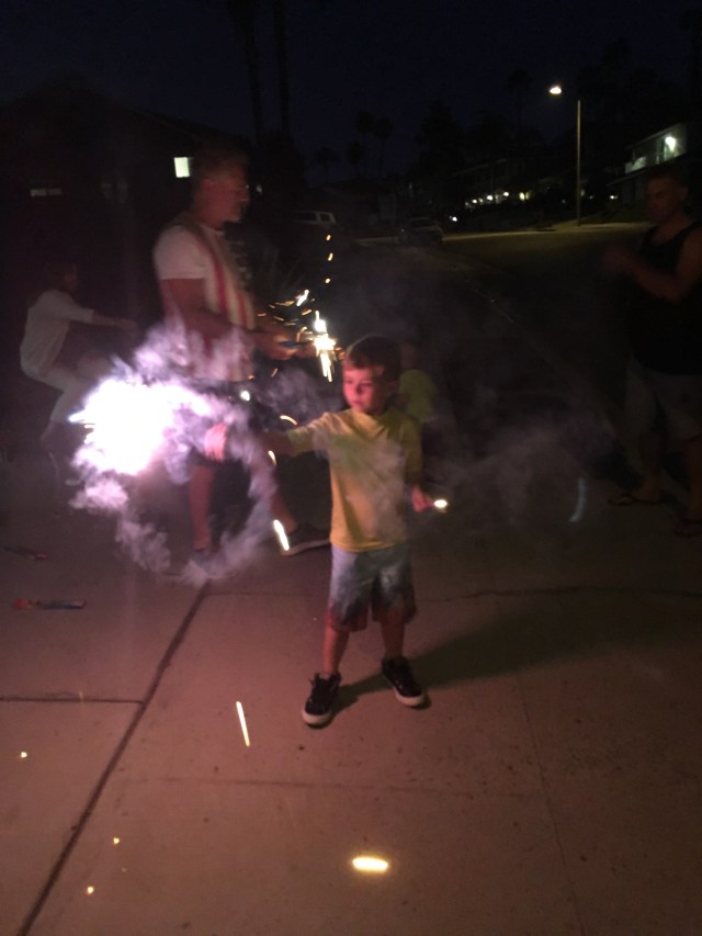 He had his last day of VBS, lunch, and a nap. In the evening we went to dinner with Mimi and Bop.